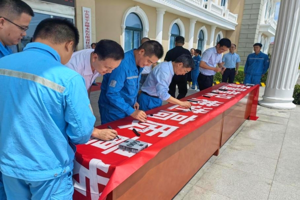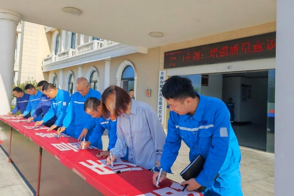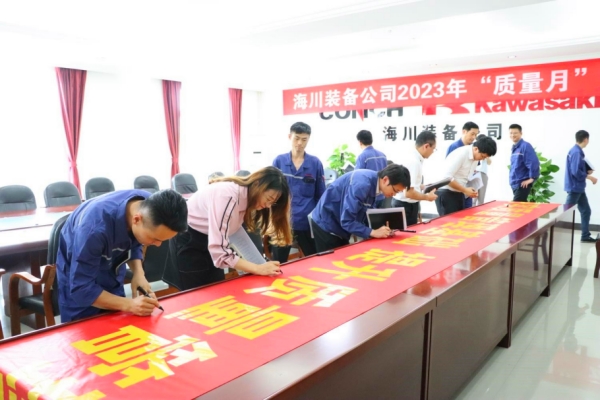 “一筆一劃簽下的不僅是自己的姓名,還有對質(zhì)量的承諾。”圖為梁平海螺、全椒海螺、海川裝備廣大員工在“質(zhì)量月”橫幅上簽名,發(fā)出“人人關(guān)心質(zhì)量、人人重視質(zhì)量、人人追求質(zhì)量”的倡議。