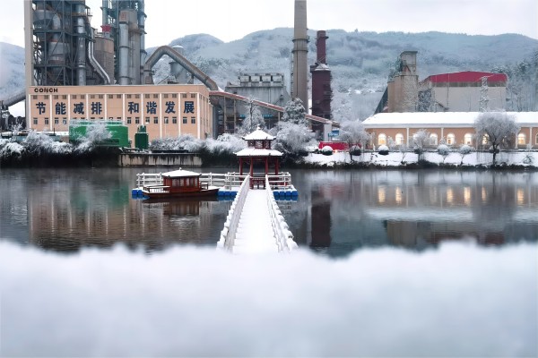 雪后初晴,陽光灑滿雪地,熠熠生輝,整個水泥廠仿佛被過濾了一般,空氣清新,視野開闊,一條條生產線正有條不紊地運行,設備吞吐著熱氣,員工踏雪穿行,留下一串串腳印,展現出一幅繁忙且有序的生產畫卷。走過廠房,瓊枝玉樹,潔白的霜花掛滿枝頭,在陽光的照射下,銀光閃爍,美麗動人;行走在林間小道,看那尚未凋零的草木,遇雪成冰,白色與翠綠相間,紅黃點綴,嵌入一抹冬的生機。