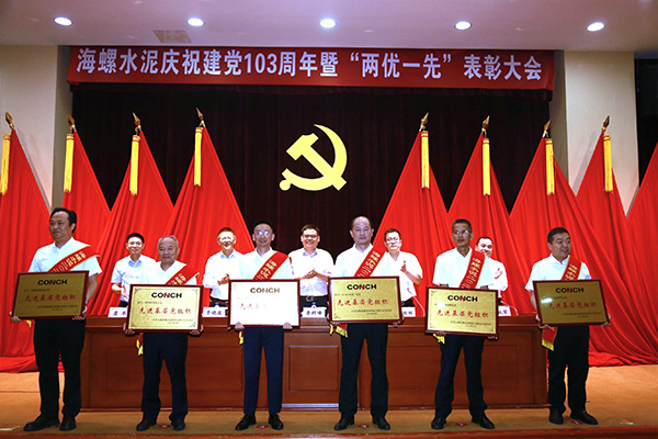 海螺水泥黨委書記、總經理李群峰同志代表公司黨委向受表彰的先進集體和優秀個人表示祝賀,向公司全體黨員致以節日的問候和崇高的敬意!