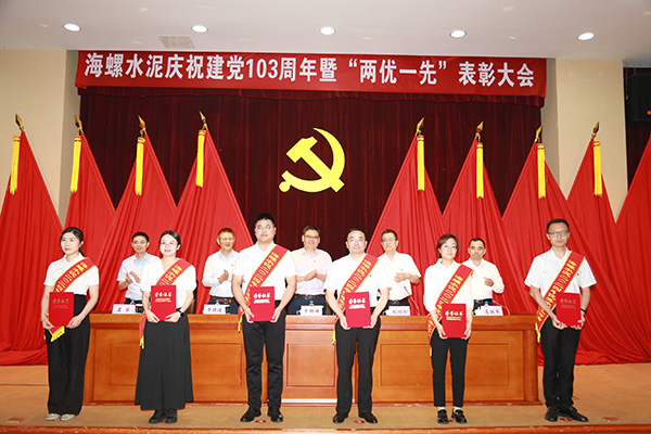 6月27日下午,海螺水泥以現場會+視頻會相結合的方式,召開了慶祝建黨103周年暨“兩優一先”表彰大會,隆重表彰了一批在推動公司高質量發展中涌現出的先進集體和優秀個人,激勵廣大黨員和干部職工堅定信心、攻堅克難,為完成年度目標任務,助推集團實現新“雙一”目標貢獻更大力量。