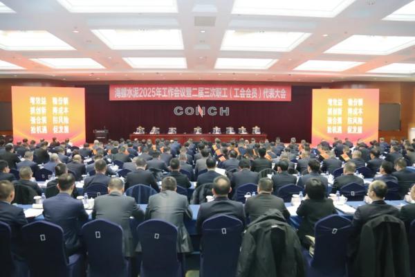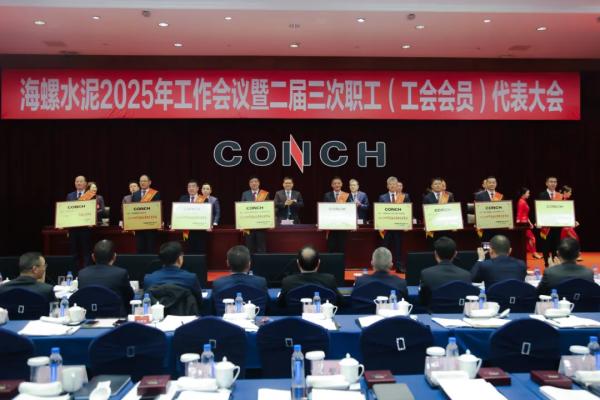 1月16日下午—1月17日上午,海螺水泥在總部大廈三樓海螺廳召開了2025年工作會議暨二屆三次職工(工會會員)代表大會。總結2024年工作,部署2025年經營目標任務。公司班子、各區域、子公司主要負責人、海螺環保班子成員、各部室負責人以及職工代表共300余人在蕪湖主會場參加了會議,各子公司其他班子成員及二級部門主要負責人以視頻連線方式參加了會議。會議分別由公司黨委副書記、工會主席劉田田和公司副總經理吳鐵軍主持。