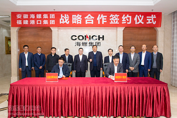 2020年12月2日,海螺集團與福建港口集團在海螺集團總部簽署了戰略合作協議。海螺集團黨委書記、董事長高登榜,紀委書記吳小明,福建港口集團黨委書記、董事長李興湖,總經理陳志平,福州港務董事長陳劍鐘等出席并見證簽約儀式。海螺水泥總經理助理虞水、廈門港務控股集團副總經理陳朝輝現場簽約。
