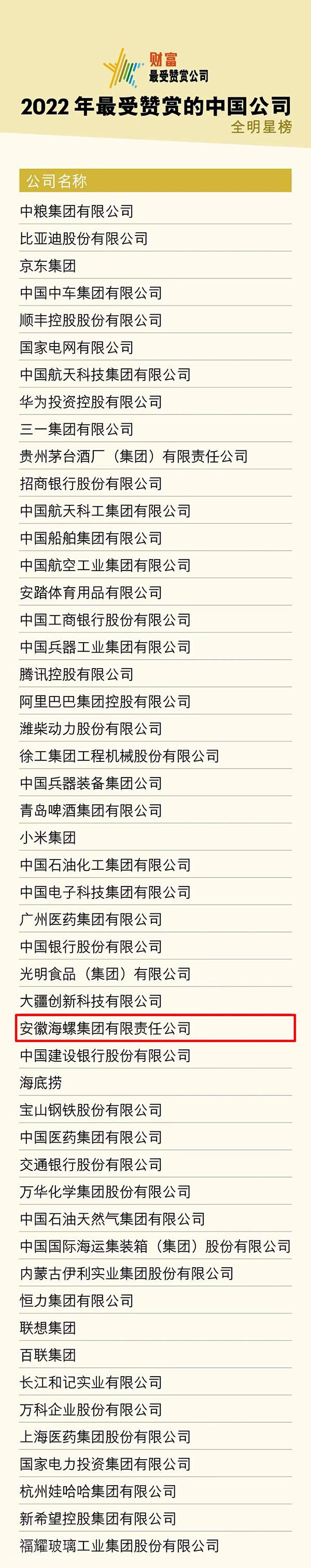 近日,《財富》(中文版)發布“最受贊賞的中國公司”榜單,海螺集團名列其中。