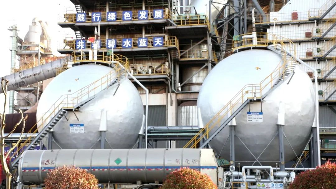 經(jīng)過捕集、純化后的二氧化碳液體,就儲存在這兩個球形儲存器中。(羅廣心 攝)