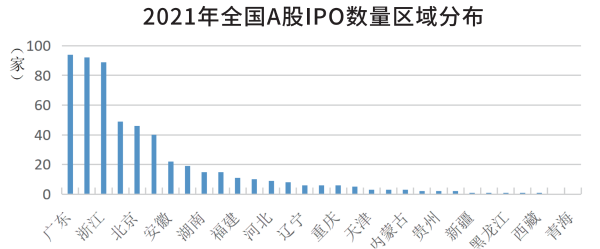 企業上市速度反映優質企業成長速度。2021年,A股IPO市場火熱,全年共計524家上市公司IPO“沖A”成功。從新增來看,安徽2021年共新增22家上市公司,其中4家由新三板精選層“平移”至北交所,再創歷史新高。年度增量居中部第1位、全國第7位。其中,新增科創板上市公司7家,居全國第8位;新增注冊制下創業板上市公司6家,居全國第8位。