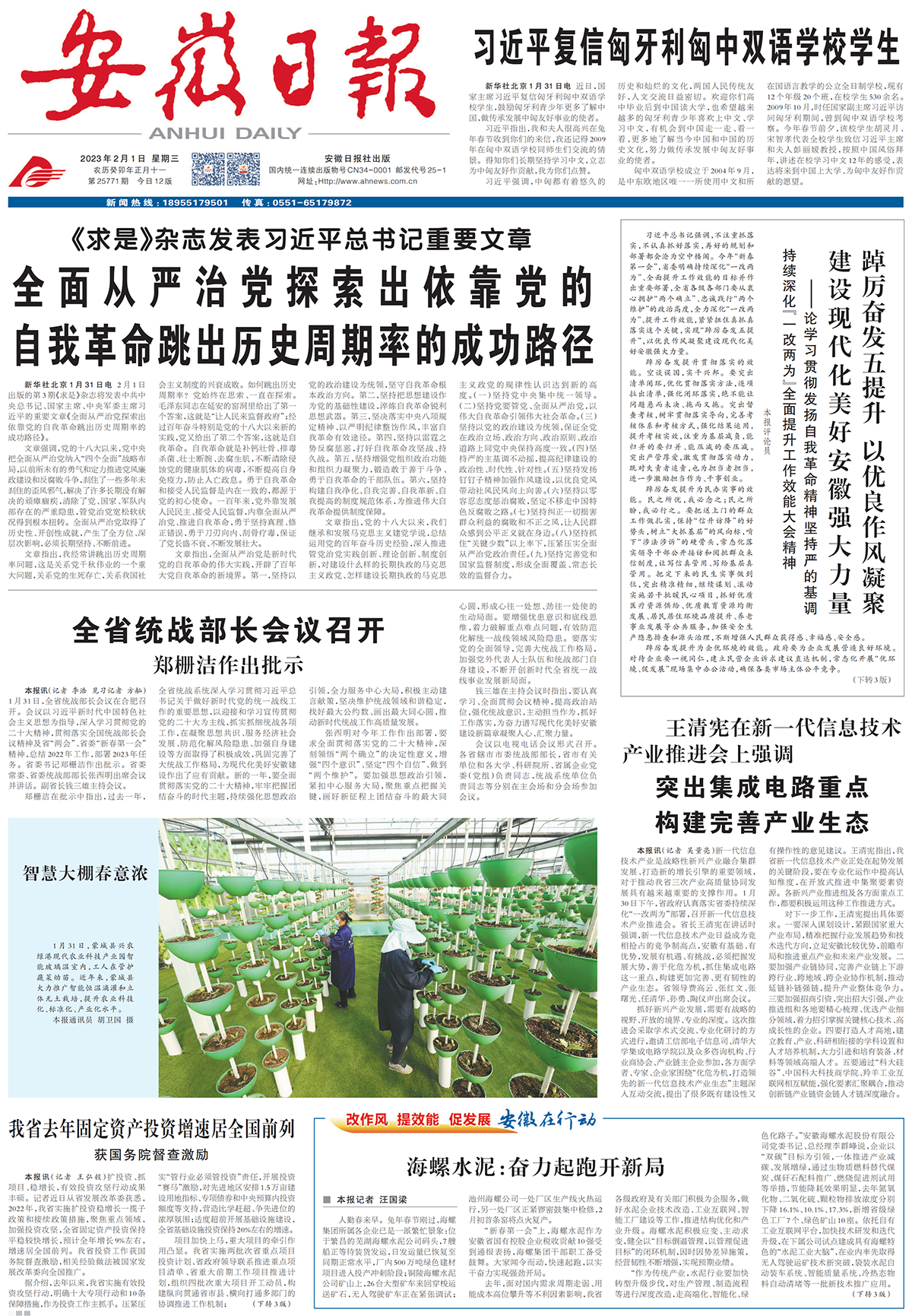 “作為傳統(tǒng)產(chǎn)業(yè),水泥行業(yè)要加快轉(zhuǎn)型升級(jí)步伐,對生產(chǎn)管理、制造流程等進(jìn)行深度改造,走高端化、智能化、綠色化路子?!卑不蘸B菟喙煞萦邢薰军h委書記、總經(jīng)理李群峰說,企業(yè)以“雙碳”目標(biāo)為引領(lǐng),一體推進(jìn)產(chǎn)業(yè)減碳、發(fā)展增綠,通過生物質(zhì)燃料替代煤炭、煤矸石配料推廣、燃燒促進(jìn)劑試用等舉措,節(jié)能降耗效果明顯,去年氮氧化物、二氧化硫、顆粒物排放濃度分別下降16.1%、10.1%、17.3%,新增省級(jí)綠色工廠7個(gè)、綠色礦山10座。依托自有工業(yè)互聯(lián)網(wǎng)平臺(tái),加快技術(shù)研發(fā)和迭代升級(jí),在下屬公司試點(diǎn)建成具有海螺特色的“水泥工業(yè)大腦”,在業(yè)內(nèi)率先取得無人駕駛運(yùn)礦技術(shù)新突破,袋裝水泥自動(dòng)裝車系統(tǒng)、智能質(zhì)量系統(tǒng)、冷熱態(tài)物料自動(dòng)清堵等一批新技術(shù)推廣應(yīng)用。