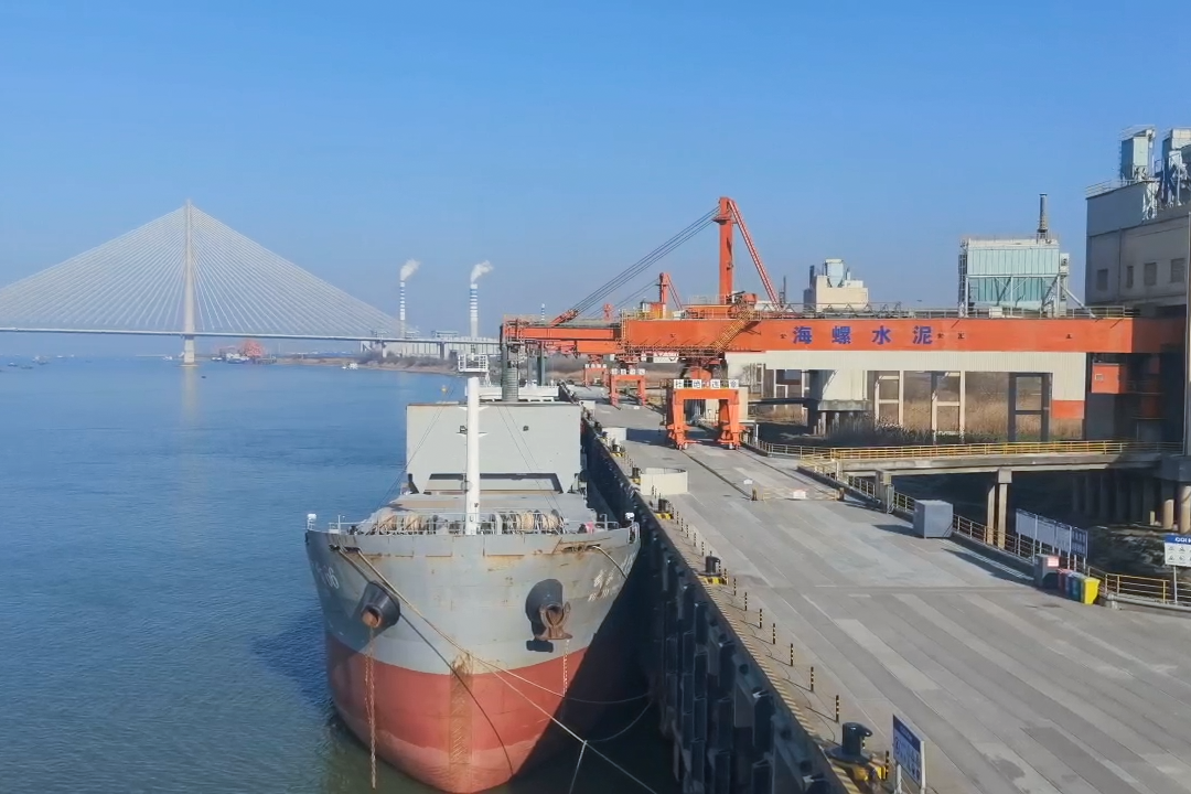 蕪湖海螺公司碼頭船只正等待發(fā)運(yùn)