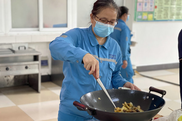 與此同時,來自各部門的員工隊伍也迅速“接棒”。團隊成員分工明確、配合默契——有人刀工利落嫻熟;有人全神貫注調味烹飪,讓酸菜魚的鮮香、三生三世連緣湯的醇厚在鍋中慢慢綻放;還有人化身擺盤高手,將鳳凰展彩堂、財源滾滾來等菜品精心裝點。不一會兒,食堂里便升騰起裊裊煙火氣,混合著糖醋、麻辣、鮮香等多重香味,將比賽氛圍推向高潮。