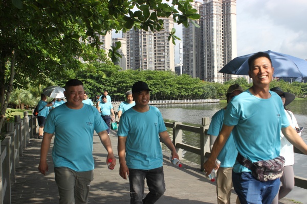 活動當日,陽光透過薄薄的云層灑下,給濕地公園披上了一層金色的光輝。員工們身著輕便的運動裝,沿著蜿蜒的環湖碧道穩步前行。一路上,微風輕拂,帶著湖水的清新和花草的芬芳,讓人心曠神怡。起初,大家步伐輕快,歡聲笑語回蕩在濕地公園的上空。隨著路程的不斷推進,大家的體力逐漸消耗,腳步也漸漸沉重起來,有人開始喘著粗氣,額頭上冒出了細密的汗珠。但團隊的凝聚力在此刻得到了充分體現,部門之間相互鼓勵,同事之間彼此扶持,有隊員想要放棄時,旁邊的伙伴會拍拍他的肩膀,堅定地說:“再堅持一下,我們一定能到達終點!”那簡單的話語,卻蘊含著無窮的力量,大家手挽手、肩并肩,一步一步地朝著終點邁進。