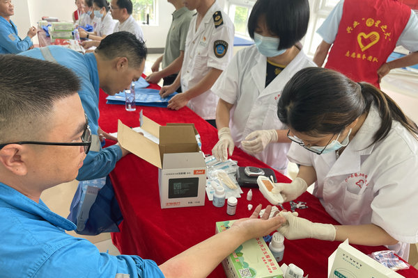 此次義診涵蓋血壓測量、血糖檢測、體重測量、心肺功能聽診等常規健康檢查,義診現場,前來咨詢和檢查的員工絡繹不絕,活動現場氣氛熱烈。醫護人員認真地為每一位員工進行細致的檢查和診斷。在量血壓、測血糖的服務臺前,醫護人員細致地為每位員工測量數據,耐心講解血壓、血糖數值所代表的健康意義,針對偏高或偏低的情況給予個性化的飲食、運動建議。內科醫生耐心解答關于高血壓、頸椎病、季節性過敏等問題的咨詢;中醫醫生運用中醫傳統診療方法,為員工們進行把脈診療,并根據每個人的體質開具個性化的養生建議。