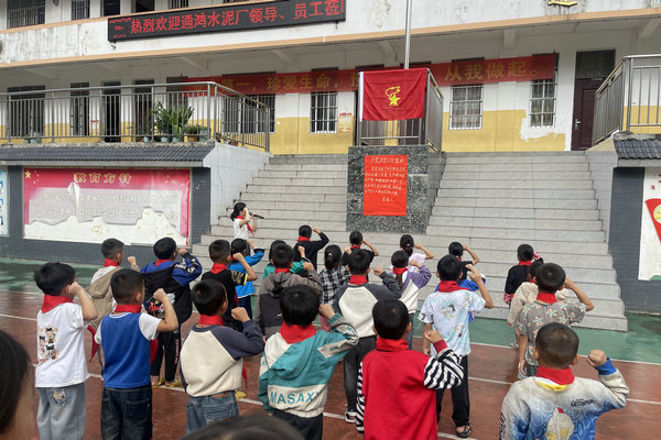 紅旗漫卷,誓言錚錚。慰問團(tuán)隊(duì)與全校師生共同參與了莊嚴(yán)的升旗儀式。當(dāng)雄壯的國歌奏響,五星紅旗在全體肅立的目光中冉冉升向晴空,熾熱的愛國情懷在每個(gè)人心中激蕩。隨后,一個(gè)意義非凡的環(huán)節(jié)到來:一批新隊(duì)員在隊(duì)旗下光榮加入了中國少年先鋒隊(duì)。凌云縣總工會(huì)江榮會(huì)副主席與凌云通鴻工會(huì)主席鄭有為等代表緩步上前,俯身為這些新隊(duì)員仔細(xì)整理衣領(lǐng),鄭重地系上鮮艷的紅領(lǐng)巾。這抹革命先烈熱血染就的鮮紅,此刻佩戴在胸前,更象征著責(zé)任與榮光的無聲傳遞。