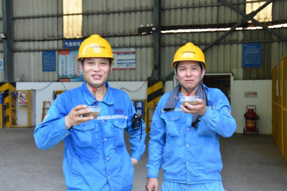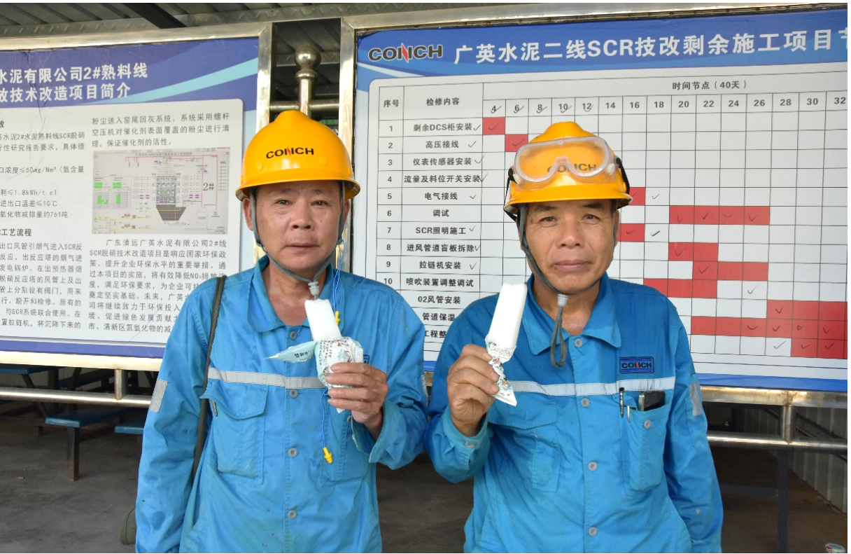 二線維修現場指揮部,忙碌一陣的兩位員工指尖捏著冰爽冰棍。勞保服被汗水浸得微微發潮,明黃色安全帽下,是他們專注又略帶疲憊的臉龐。冰涼冰棍剛入口,清甜涼意瞬間席卷全身,高溫帶來的疲憊與暑意仿佛被按下“消除鍵”。企業的貼心關懷化作舌尖清甜,讓他們帶著更飽滿的精神,為生產穩定運行全力以赴。