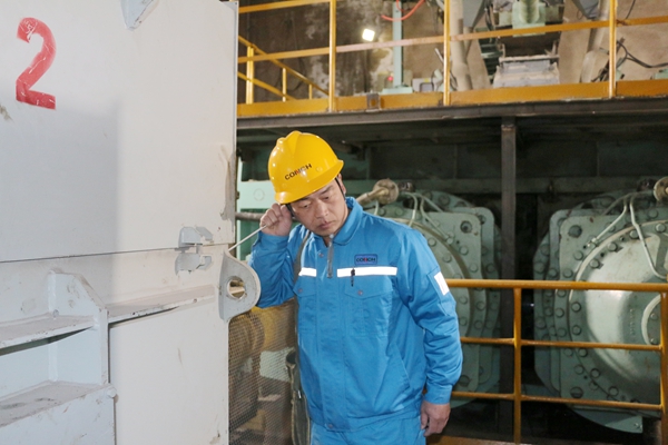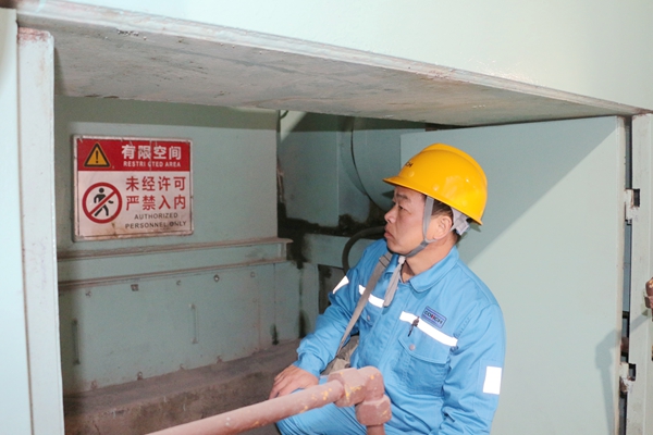 在這之后,孫林通的目光和腳步,先后三次回到這個位置。他俯身觀察,對比記錄,確認滲水量雖然很小,但卻在持續地增加。他深知任何的疏忽或僥幸,都可能讓隱患在“再觀察一下”的拖延中升級。清晨六點,當滲水現象已轉為清晰可見的細流時,孫林通果斷拿起對講機,向上級進行了清晰、準確地匯報:“4#輥壓機動輥有載端滲水加劇,疑似內部構件異常,請設備人員立即現場確認!”